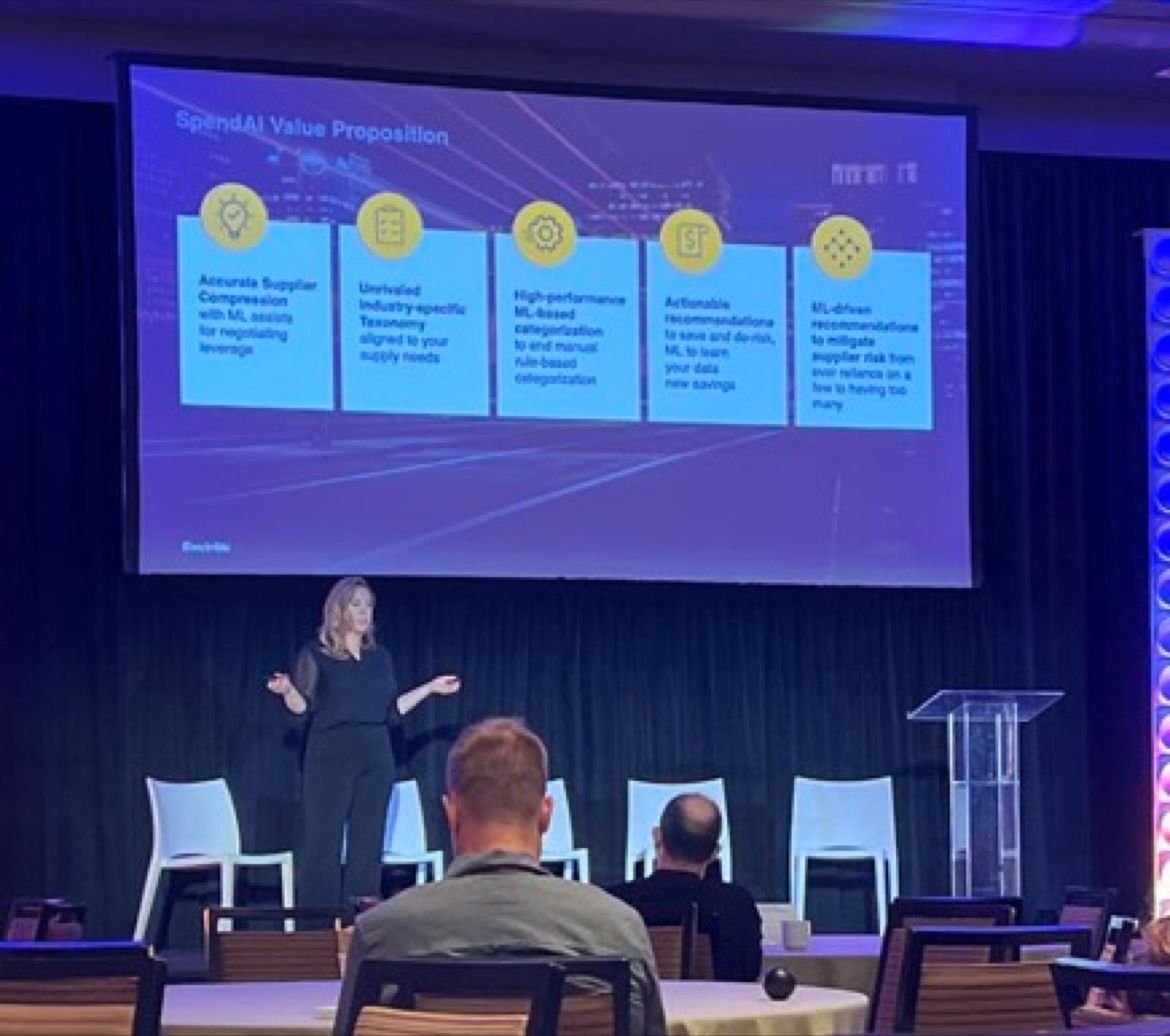 “Throughout the conference, I heard over and over again I have issues with messy data and visibility getting into the data from different systems. I focused the presentation to address that issue. If you don’t have clean and structured data, you’re going to have a difficult time making any solid business decisions from that data. With our SpendAi, it doesn’t matter how messy your data is, we can get you the actionable insights you need to start saving in weeks.” – Ashley Cline, ElectrifAi SVP of Sales